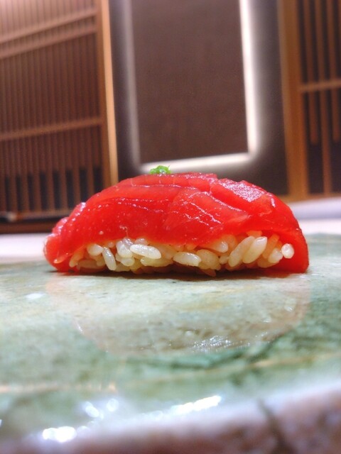 ボストン産本鮪赤身漬け─先のも然り、ボストン産本鮪、見直しました。美味しいものは美味しいんですね。それとも熟練した技もあるのかしら。