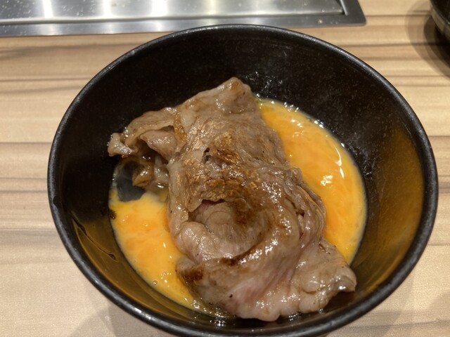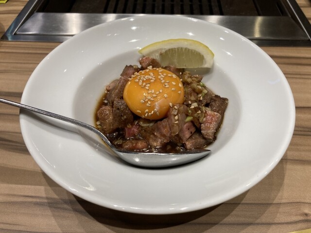 ユッケでは珍しく、ローストビーフのユッケで、卵とタレを絡めて食べると美味しかったよ。野原焼のためにライスを残そうと思ったけど、ユッケが美味しすぎて、食べきっちゃったよ。