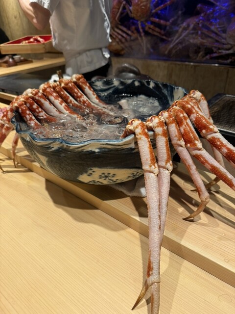 ここは生簀から生きたタカアシガニを目の前で調理してくれる迫力のある蟹専門店です。タカアシガニは珍しいし、初めていただきましたが、インパクトもあるし、とても美味しかったです。蟹を様々な調理法や食べ方で味わうこともできて大満足でした。目の前で豪快に捌いてくれるのには圧巻です。蟹について店員さんがいろいろと教えてくれたり説明してくれるのも楽しめるポイント。店内は落ち着いた和の空間で、大きな水槽に目を惹かれます。店員さんの笑顔が素敵で丁寧な接客でした。記念日や大切な人との利用にも向いているし、思い出のご飯になること間違い無しです。