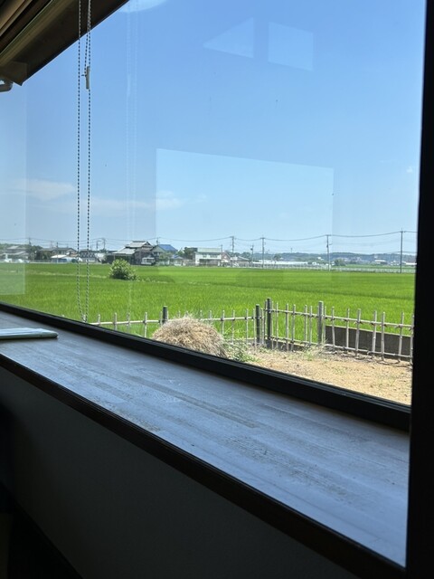 この時期は綺麗な田畑を見ながら食事ができるよ!