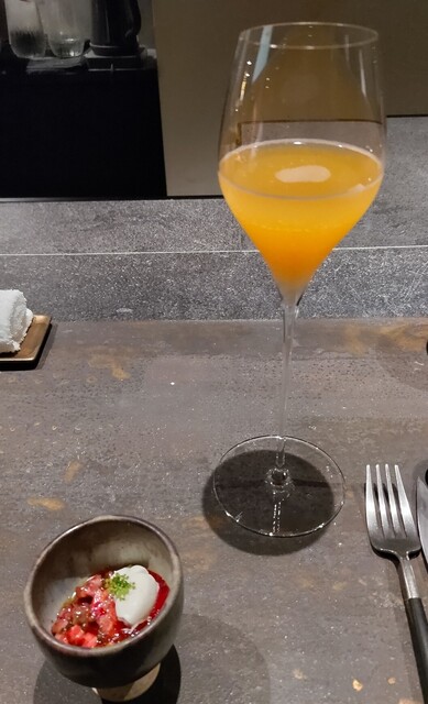 .....①ビーツ 梅干し オシェトラプレミアム 和牛 コンソメ サワークリーム.....①桃 レモンバーム エルダー ルイボスティー レモン.....