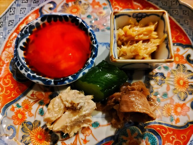 .....十二品目 ・高知のカツオのツナマヨ ・卵黄の醤油漬 ・牛肉の時雨煮 ・きゅうりの漬物 ・なめ茸 ・粕汁.....