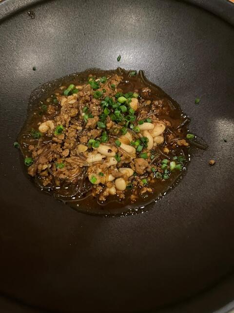 初めての訪問です。神楽坂では普通ですが、「大丈夫か?」と思うほどの小さい路地の片隅にある。中華でありながら飲み物は日本酒、ワインが充実しています。はじめは生ビールで乾杯。前菜に上海がにを紹興酒に漬けた物が出てきました。上海がにをこのような形で食べるのは初めてで、おいしかったです(写真無し)。カニを食べている間は話が弾まないですね。無言。次に出てきたのが、桜エビが入った春巻き。中身のおいしさと揚げ具合がとても良く、ビールが進みます。日本酒に変えます。DATE7と言う日本酒をブレンドした物。初めて飲みました。その次はフカヒレを焼いた物をかにのソースに載せたもの。このコンビネーションは思いつかないですね。香ばしい、ちょっとエイヒレ感がある新しい発券の味です。そして、ブリをクリームソースの上に載せ舞茸と国際トリュフを載せたもの。これは、イタリアンで出てきてもおかしくない味付け。白子の麻婆には驚きました。あり得る組みあわせですが、それをあり得ないおいしさに持って行っています。そして、酢豚。黒いこってり味のソース、ゴボウがさっぱり感を出しています。これは、赤ワインと合います。メルローをいただきました。最後は炒飯か担々麺が選べます。炒飯はさっぱりした味、担々麺はごまがきいたこってり味です。そして、最後にはショウガソースがきいたサツマイモプリンをライチー味のお茶でいただきました。中華と言いつつも、料理人の発想が生きている、イノベーティブな料理でした。大変満足です。また、予約入れさせていただきます。