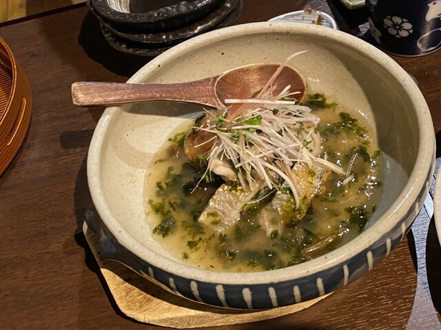 地鶏、太刀魚、豚、イカ飯。暖かい焼酎ともに。