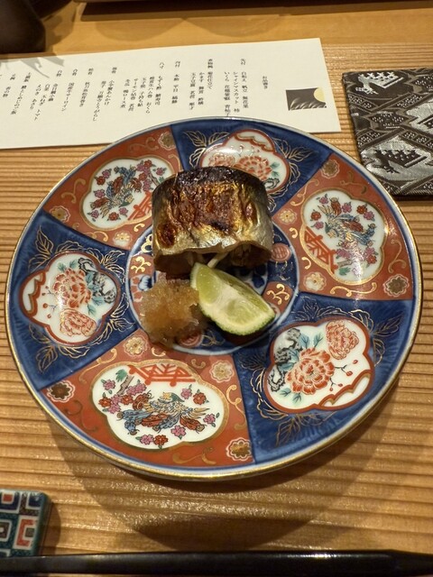 焼肴。秋刀魚松茸巻き。秋先取り。