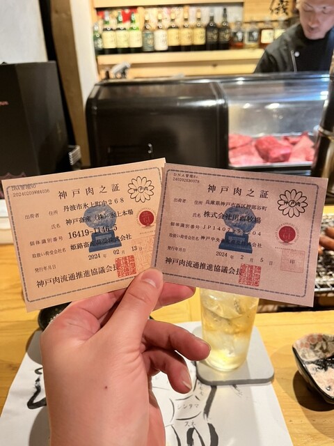 そしてお肉。お店を見渡すと名だたるブランド牛の認定証が貼られていました。通常だと1〜2枚掲げてあっても凄いですが、このお店は認定証の量が桁違いでした。こんなに仕入れられるのもお店の信用度と店主・池田さんの人柄とこの道で培ってきた力だと感じました。