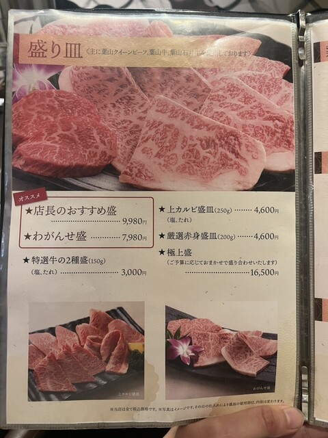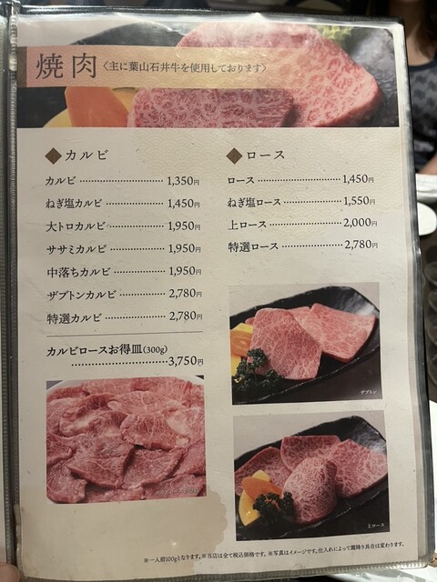 葉山牛盛り合わせ(ランプ 特選カルビ 大トロカルビ トモサンカク サーロイン ザブトン リブシン)