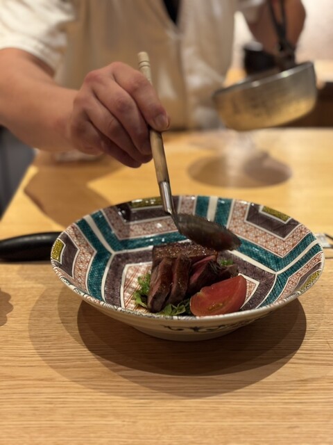 まず、お通しの「浜松産とうもろこしの茶碗蒸し 〜蛍鳥賊バター&フォアグラバター〜」。一口含むと、浜松産とうもろこしの優しい甘みと、蛍烏賊バター、フォアグラバターの濃厚なコクが絶妙に溶け合い、噛み締めるたびに微笑む美味さ。