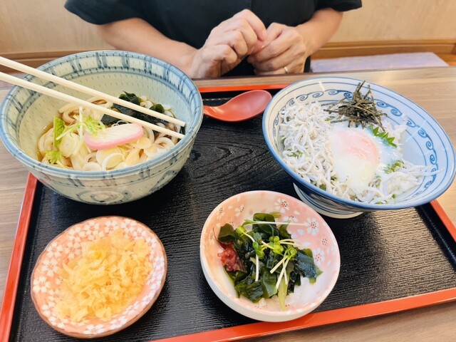 私は天ざるうどんセット、嫁さんは、しらす丼セットを食べました。