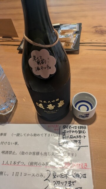 お猪口と水、タイマーがセットされ、最初の1杯をお猪口に注いだらタイマーを押し、スタートです。