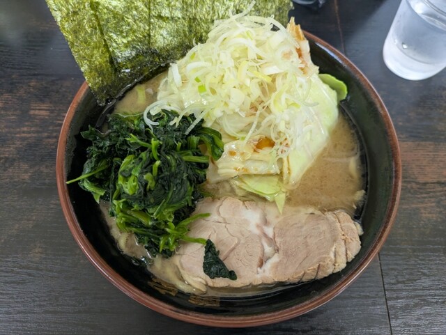 提供されてびっくり、トッピングのボリュームが想定以上です。ネギも、ほうれん草も、これでもか!ってくらい山盛りで嬉しい。