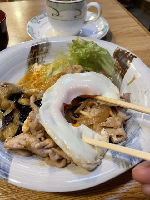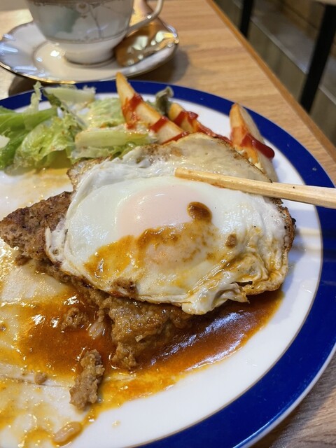 ハンバーグステーキ 目玉焼き ホットコーヒー