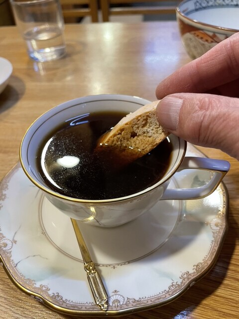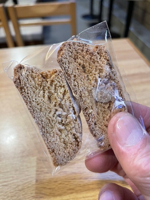 ビスコッティをコーヒーに浸すと解れる感じに柔らかくなる