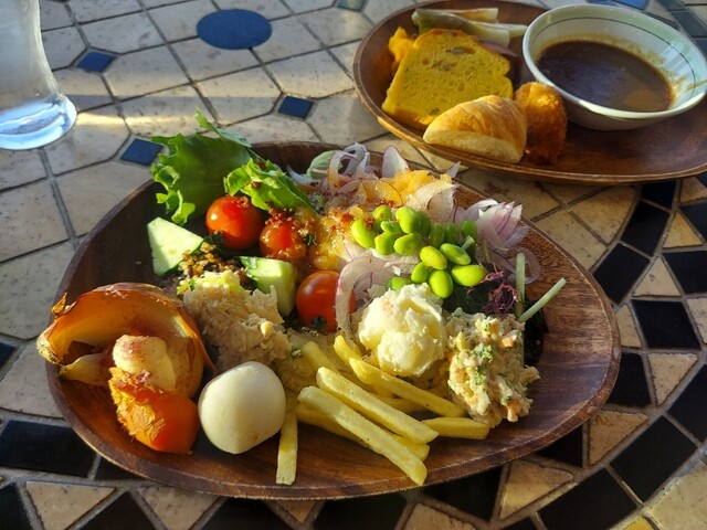 お野菜ビュッフェですが、カレー パンも
