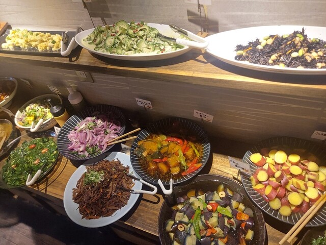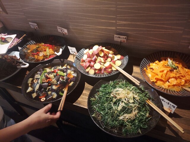お野菜ビュッフェの種類に驚き! そして美しく盛り付けられていました(^_^) オーダーバイキングのコースを
