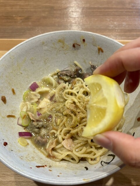 途中、魚粉とレモンで味変!魚粉でコクが出るし