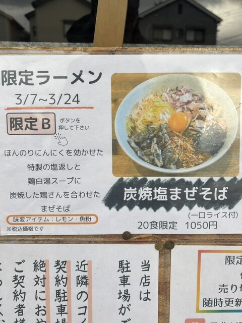 限定の貝塩鶏白湯か?炭焼塩まぜそばか?定番か?