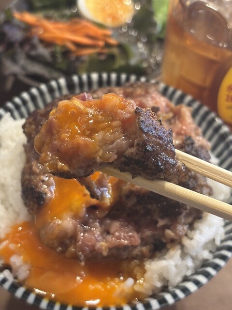 ユッケのようなレアハンバーグの旨みとタレが絶妙