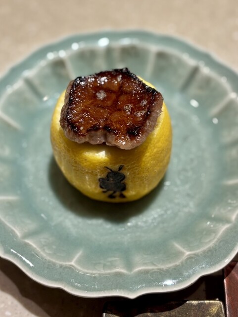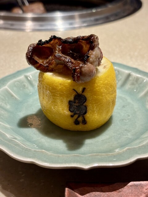 焼き上がった牛タンはお店の蜜蜂マークが刻印された丸ごとレモンの器に乗せてくれます!