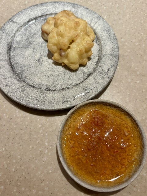 季節のチヂミは海老芋と島根産のモンゴウイカ