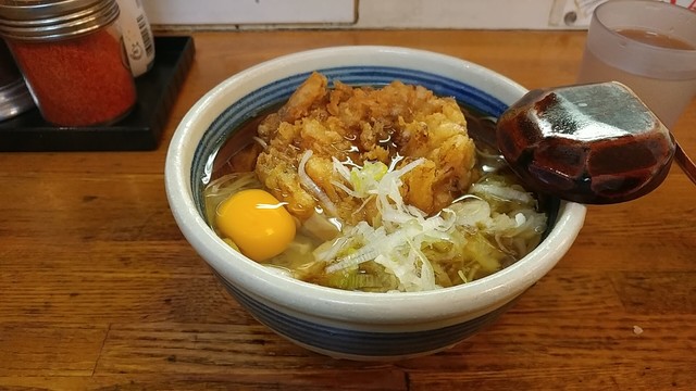 天玉そば580円 (かき揚げそば480、生玉子100円)