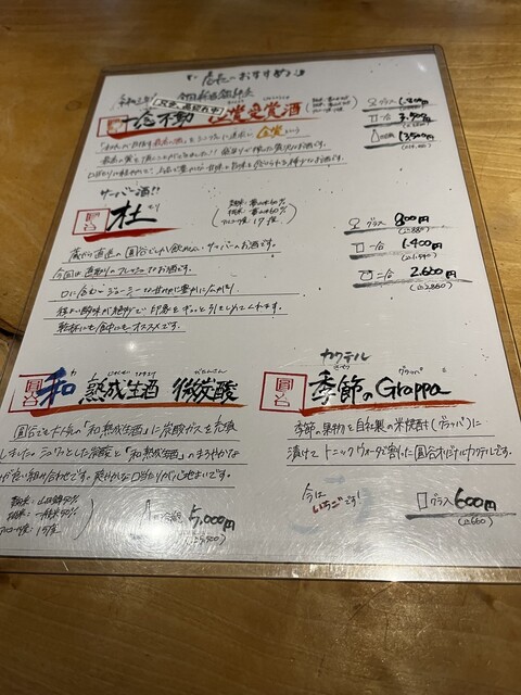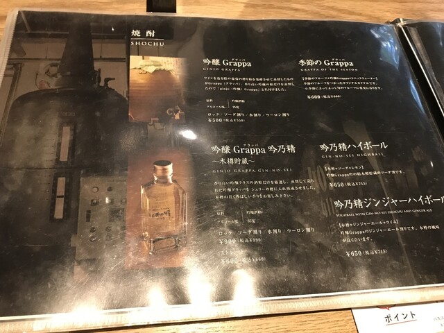ここで先の吟グラス、最後に季節のグラッパ660円をいただいた。