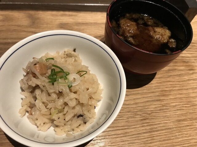 飯物 名古屋コーチンと山菜の土鍋ご飯 味噌汁