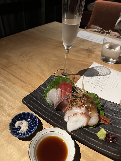 お造り盛り合わせ ボタン海老、真蛸、鰤、鱸、鮪