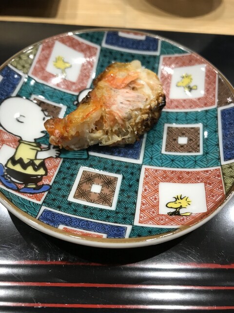 今回もランチ1万円のコースをいただく。自分は瓶ビール、嫁さんはメニューにはなかったノンアルのワインをお願いする。お酒に詳しい女将さんはメニュー以外にも日本酒を中心に色々と揃えているようだ。酒類は瓶ビールをもう1本いただいた後は女将さんが並べて説明してくれた日本酒から選んだのだが、芸なく前回と同じ醴泉と九平治をお願いした。でも自分には正解。そう言えば、空を知らせる鳴き声をならす「鳴き徳利」が可愛かった。料理皿にもスヌーピーありで遊び心も感じられる。