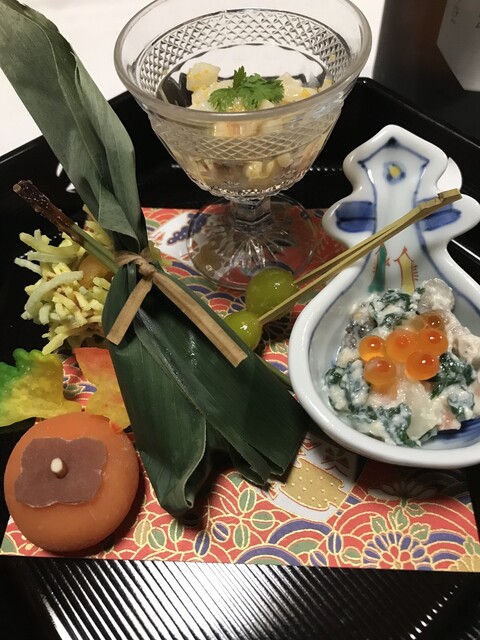 その他、栗真丈、蕎麦松葉、白和えいくら、銀杏、鮑、芋ケンピ紅葉と鮮やか。