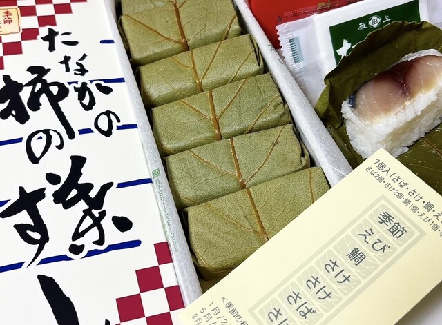 季節の柿の葉すしは、炙りサーモンでした。