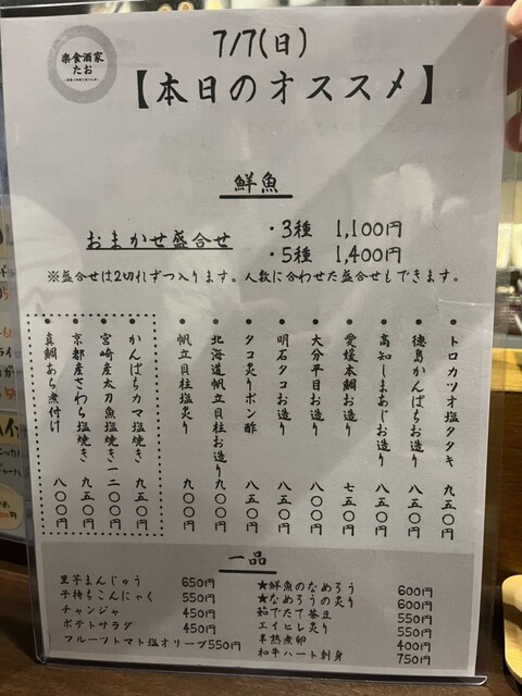 お料理はどれも手間暇かけて丁寧に作られていて、一品ごとの完成度が高いです。特にお造り盛り合わせは鮮度抜群で、身が透き通るように美しく、噛むほどに魚本来の旨味が広がりました。鱧の天ぷらは揚げ加減が絶妙で、衣はサクサク、中はふんわり。添えられた塩や梅肉で味わいの変化も楽しめ、思わずお酒が進みます!ゴーヤチャンプルーは豆腐・野菜・卵のバランスが良く、かつお節の香りが豊かで、家庭的ながらプロの技が光る仕上がりでした。他にも数品いただきましたが、どれも安定感があり、本当に外れがない印象です。