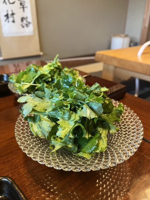 最初に提供された7種野菜のチョレギサラダは、野菜のシャキシャキ感が心地よく、さっぱりとした味付けで食欲を自然と引き出してくれます。