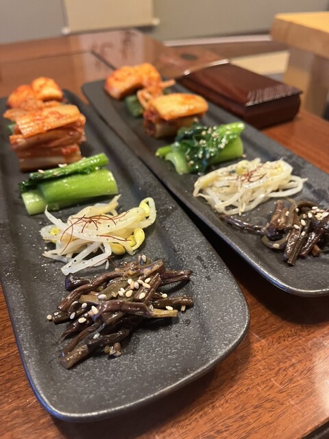 続いてのキムチとナムルの盛り合わせは、たっぷり5種類楽しめる内容で、味のバランスも良く箸休めにぴったりです。