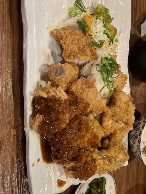 私は、やっぱりいつもの定番より少し欲張り、久しぶりのトンカツとチキンカツのミックスのだぶるをオーダー!以前と違いソースもダブルで3種類選べるようになっていたので、いつものデミグラスとハニーマスタード、そしてあっさり系のおろしポン酢をチョイス!