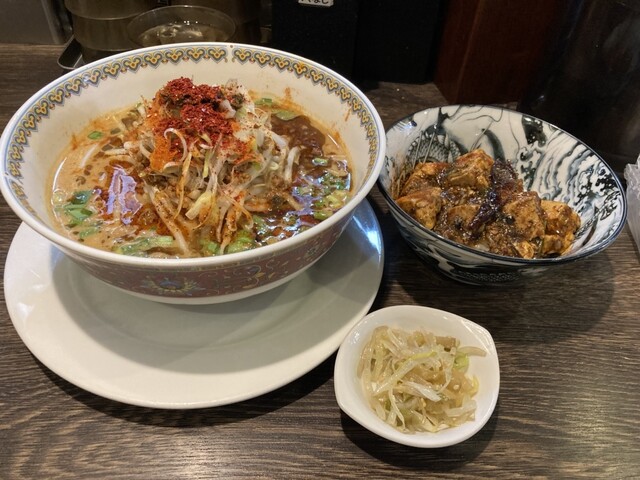 汁なしか、有りかで迷いましたがスープも美味しそうだったのと、同僚に勧められた事もあり、汁あり担々麺と麻婆豆腐のセットチョイス!