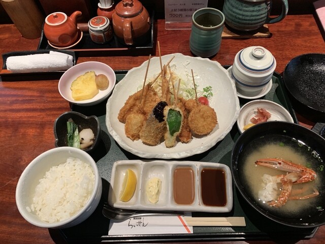 久しぶりに串ふらいが食べたくなって開店時間に合わせて訪問。店はすぐにいっぱいになり人気の高さがうかがえます。揚げたての串ふらいはどれもサクサクで、三種のソースを使い分けて美味しく頂きました。バランスが良く大満足のメニューです。また食べに来たいと思います。