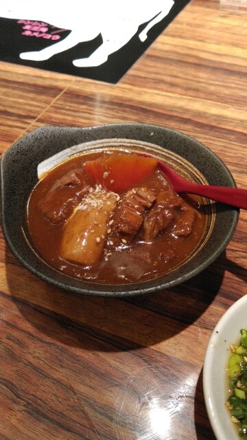 直球コースの流れは前に利用したSATOブリアンにごうさんとほぼ同じでまずは焼肉屋さんの定番キムチとサラダ、そして絶品のビーフシチュー。それから九州から仕入れたタンやハラミ、カイノミを目の前で佐藤さん自ら焼いて提供してくれます。オススメのタレやスパイスで頂くと仕事の苦労など忘れてしまう程のうまさ!!歯触りに口当たりどれも素晴らしい。焼肉通では全くない私でもわかる肉質の良さ。