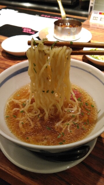 シャトーブリアンを堪能した後は冷製ラーメン。梅の酸味が口の中に清涼感をもたらしてくれる一杯。麺もツルツルシコシコで先ほどの満腹感を忘れてしまう程美味しかったです。