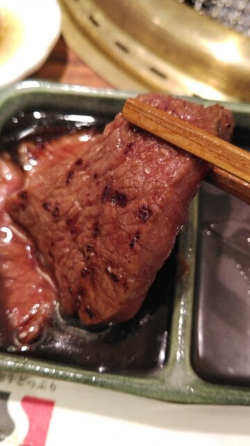 佐藤さんから霜降りと赤身、どちらが好みか聞かれ赤身と即答。佐藤さんが本日のサービスですと肉をスライスし焼き網へ。競り落とした東北の生産者さんが育てたお肉の赤身だそうでこれが美味!赤身肉のうまみが口いっぱいに拡がります。これは嬉しいサプライズでした。
