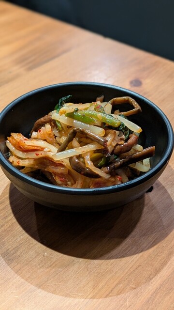 ゼンマイ・もやし・大根・ほうれん草をキムチで和えた旨味たっぷりで美味しい一品