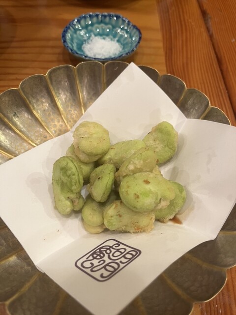 菜花と浅利のお浸し、ホタルイカの沖漬け、そら豆の天麩羅から始まり、鶏ポン酢、穴子の天麩羅とどれも絶品。