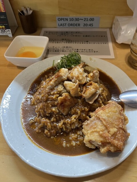 11ヶ月振り2回目でしたが、マスター覚えてくれていてびっくり。迷いますが、ホルモンカレーを注文。から揚げがまた美味しいので、2つ注文するとラス1だけど、大きくしとくわと。ぷりっぷりのホルモンとフルーティなルーがクセになります。ヒレカツがリニューアルしてめちゃ美味くなり、仕込みに手間がかかるトンテキカレーが復活したり、ボストンバットなる分厚いトンテキメニューが加わるなど、この11ヶ月でいろいろと変化があったそうです。大阪駅前ビルはレトロな雰囲気がよく、その中でもお気に入りのお店です。