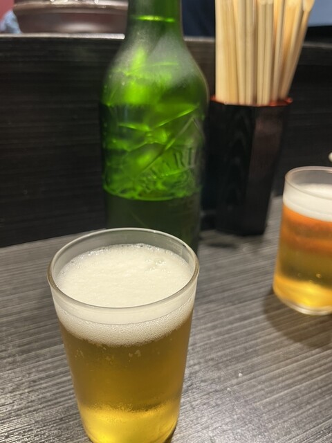 五反田ラーメントップ3の一角無冠にやっと行けました。20分ほど待って、カウンター席へ。メニューは特製牡蠣塩ラーメン一択です。暑い中待ったので、中瓶でまず喉を潤します。