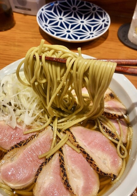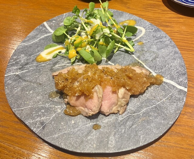 鴨ソーメンを注文したら今日は茶そばもありますがどうしますかの提案に即乗って茶そばに変更。 結果大満足。なかなかない組み合わせで、