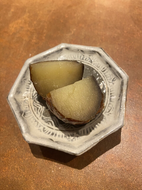 素蒸し(具なし茶碗蒸し)に削った京都産勝栗から始まり