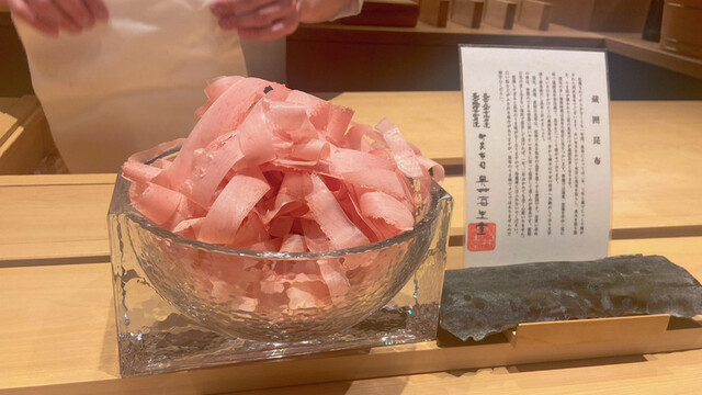 削りたての鰹節を味合わせてくれて、そのあとけずったばかりの鰹節で一番だし