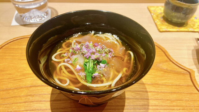 秀逸だったのは、自家製手打ちそばにじゅんさいを蓮の葉から流しいれるエンタメ !