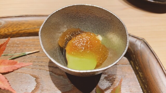 蒸し鮑の吉野煮から雲丹飯蒸しℂ茶豆添え