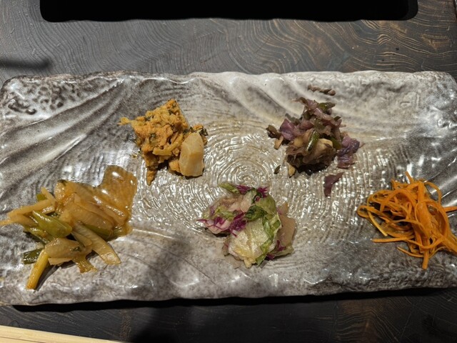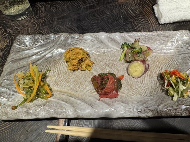 もちろん、プレートの突出しも、全て凝っていてつまみに最高❗️いつも説明してもらうんだけど、あまりに全種凝っていて、全く覚えられない